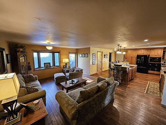 Nestled on a sprawling 21-acre plot in the serene landscapes of Glasgow, Montana, this large, secluded country home offers the perfect blend of luxury and tranquility. The heart of the home, a gourmet kitchen, is equipped with modern appliances and adorned with stunning granite countertops. The kitchen seamlessly blends into the expansive living area, featuring hardwood floors that add a touch of warmth and elegance.