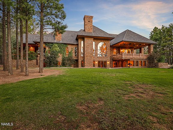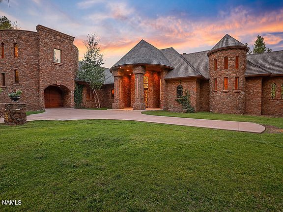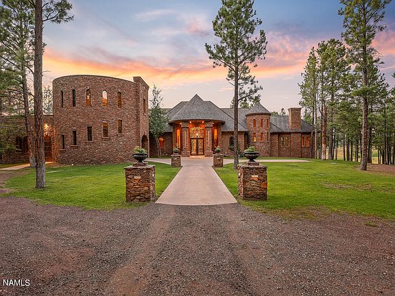 Inspired by early Tudor and Saxon architecture this Flagstaff masterpiece combines English opulence with mountain luxury. Tucked into the pines of one of the most desired neighborhoods and largest lots, lies your private estate. Enjoy the three-and-a-half acres of amazing outdoor space with family and friends. The first two floors at 6,075 square feet are meticulously put together with details and craftsmanship not seen anywhere else in Arizona. Relax with plenty of space including a game room, wine bar, crafts room and more. The top floor of approximately 1,650 square feet is yours for design with completion included in the list price. All of this and a 2,576 square foot garage or ballroom. It's a must-see. Private showings for qualified buyers. Seller is licensed realtor in Arizona.
