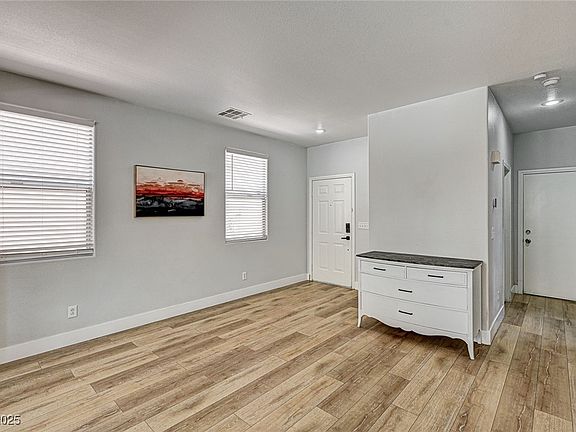 Discover your dream home in Summerlin! This delightful 4-bedroom, 3-bath residence boasts a spacious layout and modern amenities and features a convenient downstairs bedroom and bath, perfect for guests. Enjoy neutral paint and wood-look flooring throughout, along with an oversized backyard that boasts a large covered patio, extended concrete area, and an elevated spot ideal for a garden—plus, no neighbors behind for added privacy.