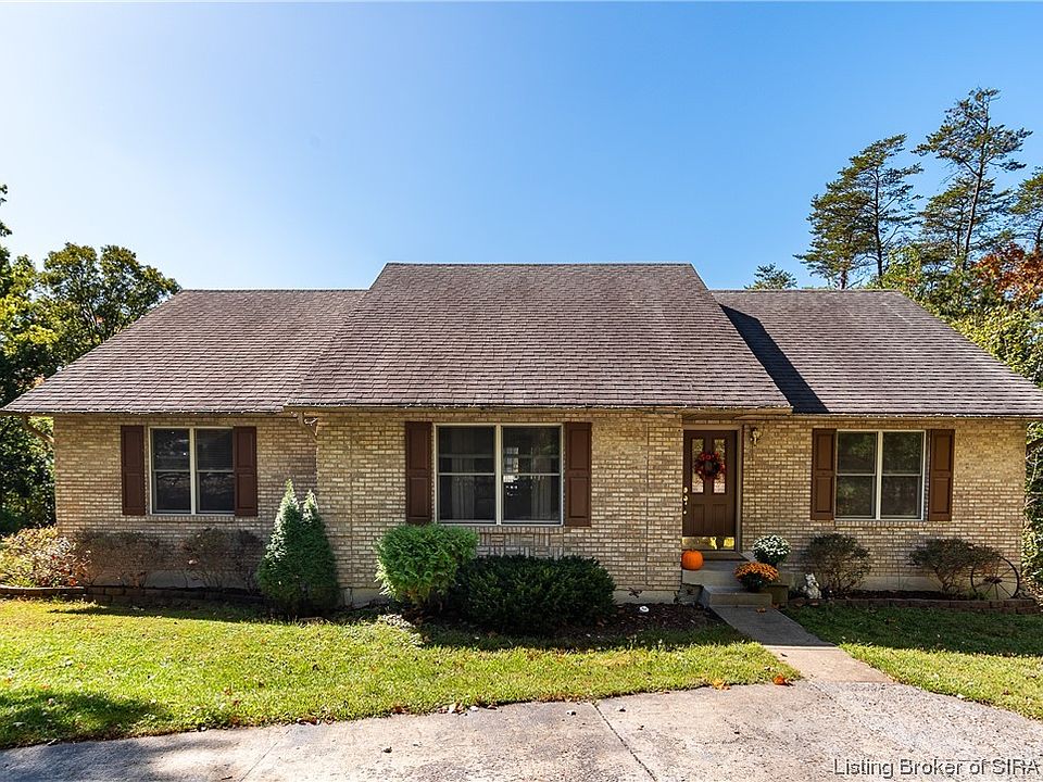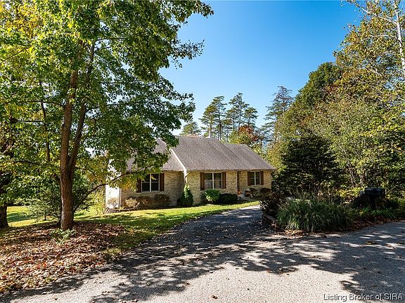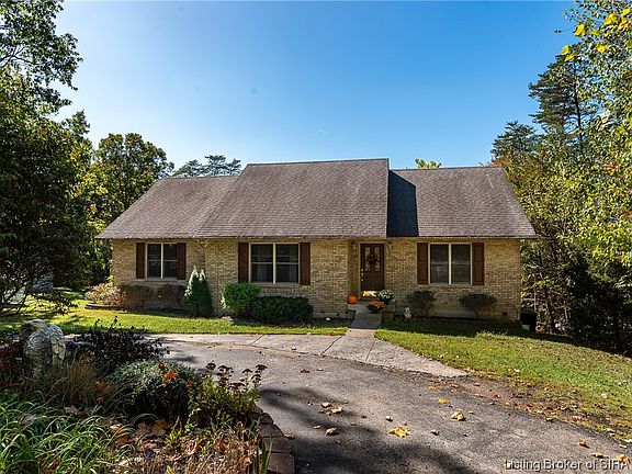convenient one floor living but also, has a finished full downstairs. All bedrooms have walk-in closets and there are huge closets in the downstairs for extra storage. The open floor plan and vaulted ceiling are spacious and bright features. An important feature of this home is a front and back access paved driveway from 2 different streets. Very convenient and lots of parking. The property also has a large back yard and a shed. Kitchen appliances remain with the home. Lake living is like being on vacation all year round. Conveniently located just 25 minutes from Louisville and less than 5 minutes from Deam Lake State Park!!!