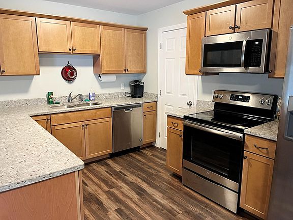 Back on market due to change in buyer's plans...and a singular opportunity in carefree living for you! This lovely end unit condominium...newly constructed in 2019 and rarely occupied by its first owner...is offered for immediate occupancy in turn key condition. The end unit features a first level owner's bedroom suite with walk-in closet and bath, large first floor rooms with luxury plank flooring, guest lavatory, large eat-in kitchen with breakfast bar and separate dining area, generous living room with slider to private side patio with a lovely seasonal mountain view and attached one car garage. Upstairs are two large bedrooms and another full bath. Enjoy central air, fast internet, public water and sewer in a most desirable location close to schools, hospital, restaurants and all village amenities. Buyer responsible for $420 one time association buy in fee (two months of condominium fee) at closing. Easy living awaits...a rare find indeed!