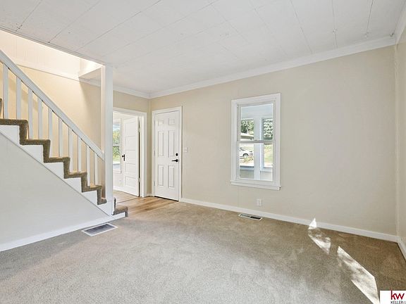 Fully remodeled from top to bottom, this 3-bed, 1-bath charmer perfectly blends modern style with timeless character! Step inside to a bright enclosed front porch, open living and dining rooms with fresh paint, new carpet, and custom built-ins that add warmth and functionality. The all-new kitchen features white cabinetry, matte black fixtures, fresh countertops, LVP flooring, and stainless-steel appliances. The bathroom impresses with a new vanity, lighting, and a glass walk-in shower framed in sleek black trim. Main-floor bedrooms offer comfort and versatility, with an additional upper-level bedroom for extra space. Enjoy a full unfinished basement for storage or hobbies. Outside, find new exterior paint, gutters, trim, fresh landscaping, and a long concrete drive leading to a shaded yard and storage shed. Located in a quiet, established Council Bluffs neighborhood close to schools, parks, and North Broadway conveniences—this home is truly move-in ready!