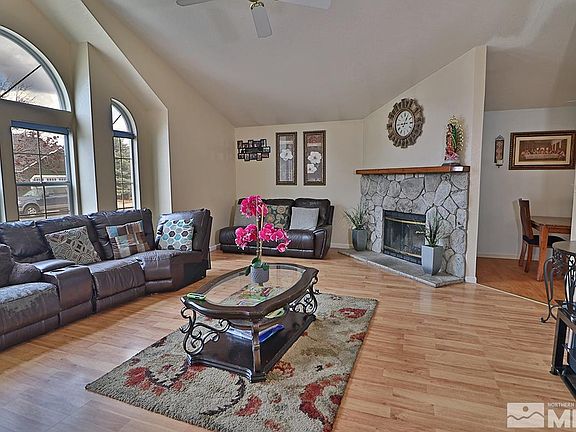 Light and bright home in a desirable location in South Carson City. Large living room with great windows that offer a lot of light, vaulted ceiling and a wood burning fireplace. The kitchen leads out to a good size patio and large green grassy backyard is perfect for kids to play and summer BBQ. Only minutes to downtown Carson City and easy access to freeway up to Lake Tahoe or Reno.New stainless steel stove is being installed weds.