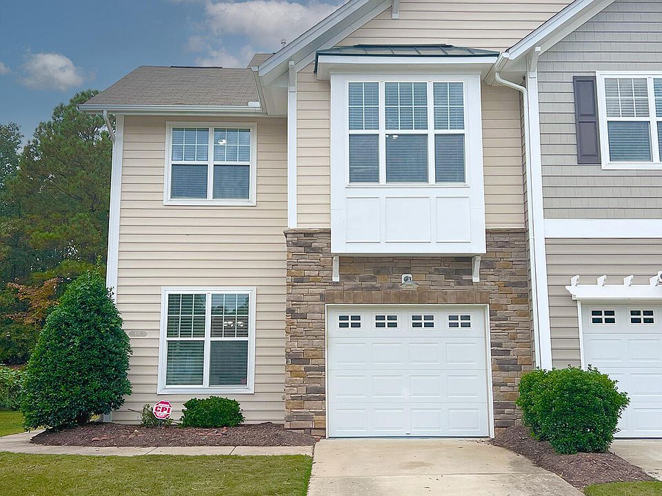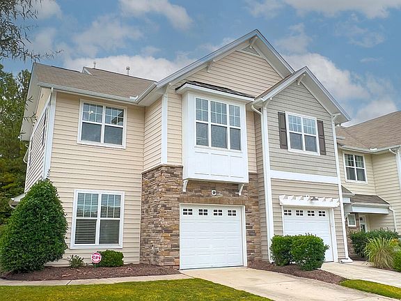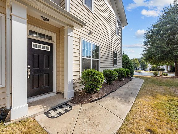 Beautifully updated end-unit townhome with a private side entry, back yard, and easy commutes to RTP, Downtown Raleigh, Chapel Hill, and Durham. Inside, you'll find 9-foot ceilings on both levels and a light-filled layout that showcases a gorgeous kitchen with granite countertops, upgraded cabinetry featuring custom lighting, and a high-end glass tile backsplash. Additional highlights include a gas stove and fireplace, upgraded LVP flooring, and two-inch faux wood blinds throughout. The spacious primary suite features a separate tub and shower, while the convenient upstairs laundry area includes a washer and dryer. The home boasts a flexible floor plan with a secondary suite that has access to the hall bathroom, as well as a third spacious bedroom. Other features: pedestal sink, garbage disposal, and a one-car garage. A community swimming pool is included in the amenities. Just two minutes from SCBB Cricket Ground, and nearby parks include Church St Park and Shiloh Grove Park.