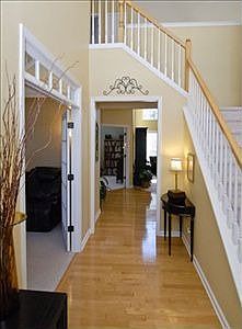 This beautiful home is move in ready! The open floor plan offers 4 bedrooms, 2.5 baths, 2 story foyer with transom windows and new hardwood floors. The main level has a lovely formal dining room with tray ceiling, designer lighting as well as great natural light. The formal living room with French doors could be a home office. An additional room also with French doors makes a great office or den. The large open kitchen features an eat-in island, granite countertops, apron -front sink, tiled backsplash, great counter and cabinet space plus pantry closet, a cooks dream. The kitchen opens to the breakfast area and the 2 story great room. Two staircases lead to the upstairs, there you will find the master suite with sitting room, master bath with double vanity, garden tub and amazing walk-in closet with a California closet system. 3 additional bedrooms and bath and a bridge that looks over the family room. Enjoy the summer relaxing on the oversized screened porch overlooking the private fenced yard featuring a small pond water feature and outdoor fire pit, great for summer entertainment. You are going to love what this home has to offer.