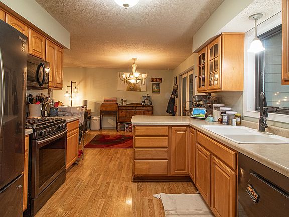 Spacious 4-bedroom, 2-bath home featuring a well-appointed kitchen with two pantries, lazy Susan, and newer appliances (2020) and an updated upper-level bath with tile. Step into comfort with a cozy 3-season porch, that invites relaxation. Andersen windows were installed in 2020, ensuring energy efficiency and comfort year-round. Lower-level family room includes a gas fireplace, the ideal retreat for Minnesota's cooler evenings and an entrance to an oversized, insulated 2-car garage which provides ample parking and room for storage with direct access to a patio and fenced dog run. All appliances stay, including a newer stand-up freezer in the laundry room, making your transition smooth and worry-free. This property is awaiting your personal touch—envision new carpeting and a fresh coat of paint to make it truly yours. This home is conveniently located near Hwy 5 and 212 for an easy commute.