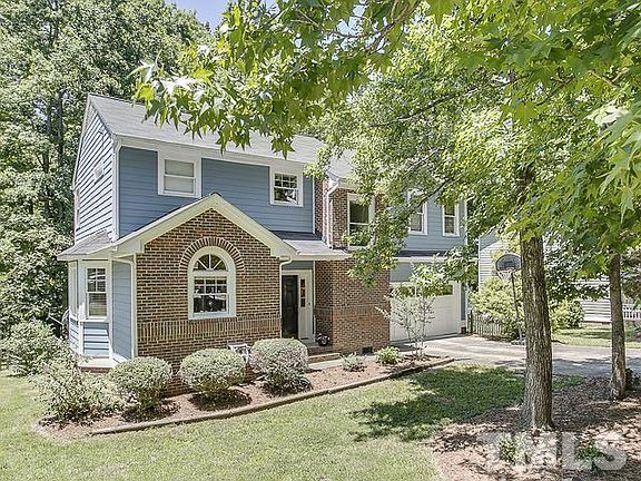 Sunny & bright home in super desirable Fairoaks! 4 bedrooms, 2.5 baths and 2 car garage. Spacious living room, fireplace. Kitchen has SS appliances, gas range and cozy breakfast nook. Master has double sinks, garden tub and separate shower. Incredible fenced yard & great deck. Private/quiet/peaceful. Cul-de-sac. Backs to Carolina North Trails. New carpet, roof 2013, HVAC 2014, newer water heater, lots of masonite replaced w/ fiber cement. CONTINGENT ADDENDUM, PLEASE SHOW FOR BACK-UP CONTRACT.