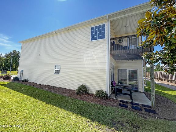 This spacious 3 bedroom and 2.5 bath, end unit townhome on Surf City Mainland is walking distance to shops, local gyms, grocery, restaurants, a 5-minute drive to Top Sail's beautiful sandy beaches and so much more! This quaint Triton Village community even has its own private pool. But that is not all. This charming townhome offers that open concept living. The living room has a gas log fireplace and is adjacent to a covered porch. The large kitchen featuring stainless appliances and open to the dining area. Upstairs you will find the large owner's suite with its own private porch, a large walk-in closet, large bathroom with walk-in shower, whirlpool tub, and double vanity. The second and third bedroom share a bath. Another great feature on the second floor is the laundry room. This home makes a wonderful primary home or investment property for year-round rentals. Located 20 minutes from Camp Lejeune! House location gives you free island parking for 2 cars!