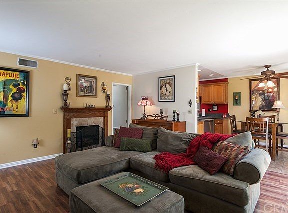 Charming Single Level end unit home in Great Neighborhood of Placentia. This spacious floor plan offers 3 bedrooms, 2 bathrooms with approximately 1,200 square feet of living space. Home has been upgraded with laminate hardwood flooring, new carpet in bedrooms, recessed lighting, custom paint and double pane windows. Kitchen has been remodeled with granite countertops, stainless steel appliances, walk-in pantry and breakfast nook seating area. Kitchen is open to family room with reborn custom fireplace w/tile and large wood mantel. Large master bedroom with walk-in closet and private master bath with walk-in shower & granite countertop. Secondary bedrooms are spacious with own walk-in closets. Hallway guest bathroom offers shower-in tub and remodeled granite countertops. The private patio is a perfect size for BBQ and outdoor dining with access to spacious 2 car garage which offers laundry hookups for washer/dryer. HOA amenities include pool, spa and club house. This home is conveniently located to shopping, restaurants, Cal State Fullerton and located in the Placentia-Yorba Linda School District.