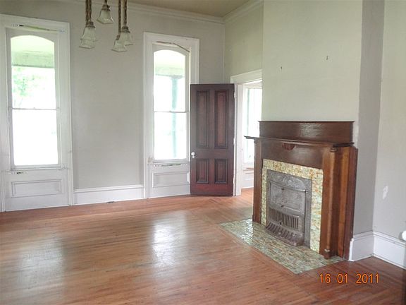 Possibilities are boundless in this once gorgeous Victorian home. Lovely tree-shaded corner lot. Nice woodwork with open stairway, built-in china cupboard , hardwood floors, fireplace. Very spacious rooms - some original light fixtures. Great wrap around porch!