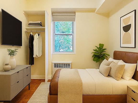 Both bedrooms easily accommodate queen-size beds plus additional furniture. The separate kitchen features a dishwasher. Excellent closet space and natural light throughout. Heat, water, and gas included.