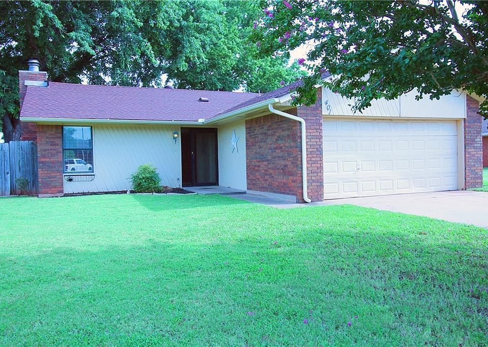 Welcome to this very well maintained home at 401 W 8th St. Great central Edmond location, across the street from Sunset Elementary School. 3 bed, 2 bath with 1166 sq feet. New tile in living area, kitchen and through hall. New carpet in secondary bedrooms, new pergo floor in master bedroom. New toilets in both bathrooms along with new plumbing valves and fixtures throughout entire home. Recently painted, Ceiling fans, and new blinds on every window. Access to the backyard through the master bathroom. Large fully fenced backyard with a regulation horseshoe pit, just waiting for a BBQ with family and friends. Don't miss out on this gem!!