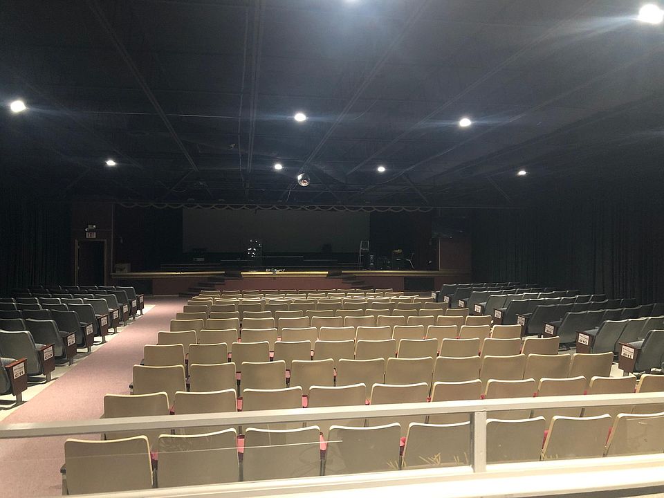 Theatre with 257 seats. Seats can be removed if needed. Does have a doc on the back if needed also. Stage can be removed also. Floor is flat. Huge parking lot. Tenant responsible for gas, water, and electric