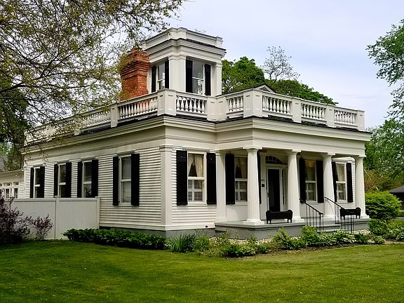 Tecumseh's "Flag Ship" home, this stately Greek Revival has graced historic Tecumseh with its presence since 1832. Abounding in history from secret tunnels to the days of the Tecumseh Tavern, this home offers 3 separate living areas for the price of one.The main home has over 3,500 sq. ft. & is surrounded by almost an acre. Gracious formal entry (with open stairway, crown molding & 11-ft. ceilings) opens to the Living Room (Library) & Dining Room. A Master Bedroom w. adjoining sitting rm., 2 additional bedrooms, updated bath, kitchen w. fireplace & granite counters, & sun-filled Family Room complete the main floor. Upstairs is open loft-type sleeping area & full bath. AND THEN THERE'S THE CUPOLA, where you can watch the world go by. Property also includes an attached in-law apartment & a separate 2-bedroom guest home, formerly the carriage house, plus a 3-car garage. Home has been correctly & lovingly restored in the last 4 years. This is your chance to own a fabulous piece of history!