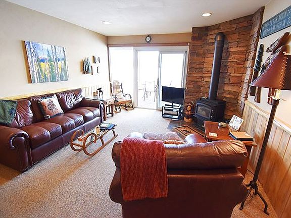 Ground floor condo, cleverly designed unit with incredible snow-capped mountain views! Available November through April 30 for ski season rental! This 1 bedroom, 2 bath unit has tile floors in kitchen and bath, wood accents and lake and lodge themed decor. Sleeps 4 with 2 queen beds in bedroom. Leather furniture in the comfortable living room with a wood fireplace and flat screen. Patio has seating for 4 and a shared gas grill with the next unit. Walk out to the patio, snowy play yard, lakeshore and recreation path. Just 5 minutes to Keystone, 15 minutes to Copper Mountain or Arapahoe Basin, 20 minutes to Breckenridge, 30 minutes to Vail. Less than 5 minutes to all services such as supermarket, REI, Starbucks, ski/board rental, sporting goods, cinema, restaurants, brewpubs, nightlife, and more. The Summit County Recreation Path is plowed in Dillon allowing for fun walks with mountain views and star-filled nights. Property includes indoor common area hot tub, lounge and laundry facilities. Parking for 2 vehicles. No pet/No smoking. $2,500 per month includes all utilities even cable and WiFi. The prospective tenant has the right to provide to the landlord a portable tenant screening report not more than 30 days old, as defined in section 38-12-902(2.5), Colorado Revised Statutes; and if the prospective tenant provides the landlord with a portable tenant screening report, the landlord is prohibited from: charging the prospective tenant a rental application fee." C.R.S. 38-12-904(1.5)(a)(IV)(d).