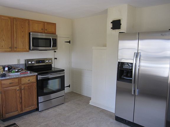 Totally updated 2 Bedroom 1 Full bath home with Cathedral ceiling in the master bedroom & new carpet on both levels.The full bath has a tub/shower.The kitchen on the first level has new SS appliances. This includes refrigerator, electric range with built in microwave. The living room has new carpeting and through the front door, leads onto a front, covered porch. The unfinished basement has access through the kitchen and also from under the front porch. There is an above ground oil tank, furnace in the basement along with dryer and washer hookup if the tenant wants to have a high efficiency washer at their own expense. There is a paver patio out the rear of the home.
