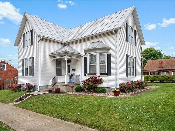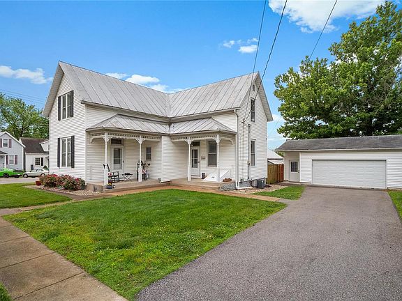 Back on the market at no fault of Sellers. Take a stroll & enjoy some of the local restaurants, businesses & fun festivals held in downtown Waterloo. This 4 BD (master bed on main), 2 BA home checks all the boxes. House features beautiful original staircase, historic millwork, transom windows, pocket doors & every room is very spacious throughout! Owner has done many updates: interior painting, new kitchen appliances (2020), kitchen floor (2019), beadboard trim (2016), & pantry (2016); and upstairs bedroom & bathroom remodeled (2020). This home has not one, but THREE separate covered porches to sit & enjoy those summer nights. New exterior updates include a new pergola, repaired concrete sidewalks & new landscaping (all within the last 5 yrs). Large 2-car detached garage has plenty of room for storage. Washer & Dryer new in 2016 to be included! Roof is metal, meaning low maintenance! Duct work professionally cleaned in 2020! If you love older homes with character, this is it!
