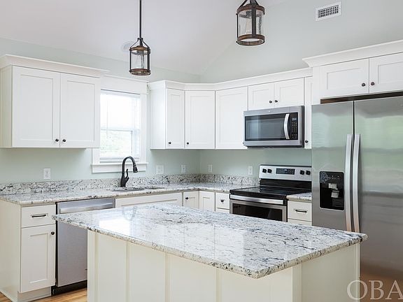 Just like new! Built in 2018, this 3 bedroom 3 bathroom home is in excellent condition. This home features a spacious floor plan with beautiful pine hardwood floors in the main living area and kitchen. The kitchen is complete with stainless steel appliances and granite countertops. All 3 bedrooms are located on the second floor just off of the main living area. The primary suite features vaulted ceilings with additional recessed lighting, walk in closet and a private bath with two sinks and tile shower. The first floor offers a large bonus space with full bathroom that could make the perfect game room, office or second living area. This home sits on a corner lot with a beautiful live oak tree in the front yard and a 6 foot privacy fence around the back and side yard. Underneath the home there is plenty of space for extra parking, storage or even a covered lounge area. This home is located in the heart of Kill Devil Hills with easy access to Bay Drive for gorgeous sunset views over the Kitty Hawk Bay. It is also conveniently located to many shops and restaurants and is only a 3 minute drive to the beach!
