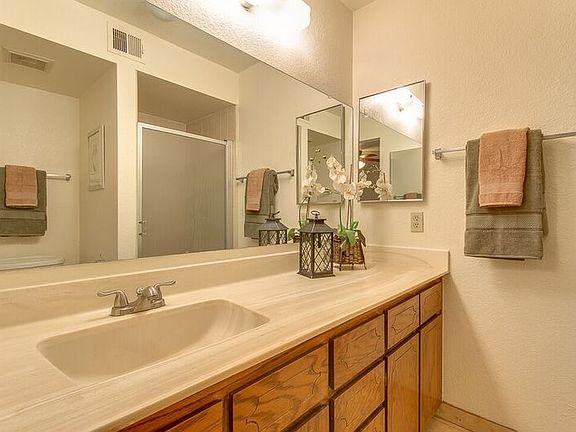 Spacious 2x2 has a 16'x10' eat-in kitchen and 16'5"x 14 living room, The master bedroom is 13'x12'8" with private bath and huge walk-in closet. The 2nd bedroom is 13'x10'4". The private patio has storage and side by side washer/dryer hookups. #401- # has ceramic tile throughout. 602-374-3413 or email info.fmr@phxcoxmail.com for more information and a tour.