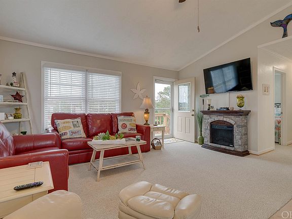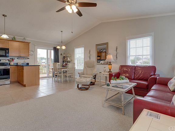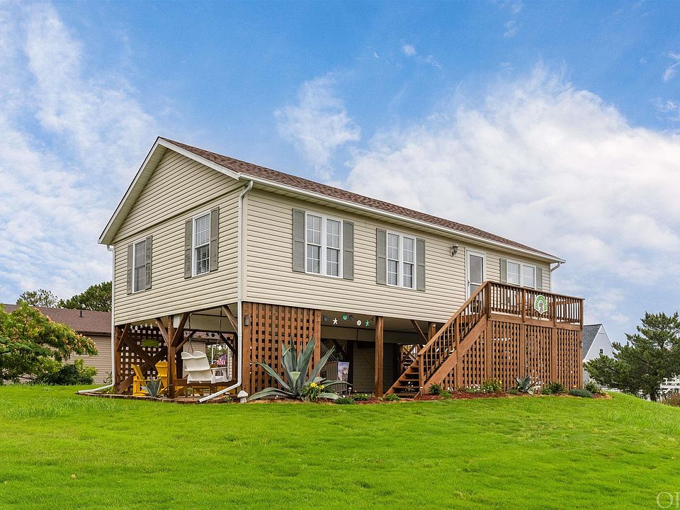 Charming beach cottage that has been meticulously maintained and used only as a second home since owners purchased and renovated.  Home features a spacious great room with vaulted ceilings, kitchen with granite, ceramic tile in kitchen and baths.  Amazing outdoor space with decks, including a crow's nest for spectacular views, or relax under the house with built-in benches, swing, or rest and enjoy the breezes in the hammock.  The yard is picture perfect with sod, beautiful landscaping and irrigation system.  There is a large, and cute storage building in the back yard for the extra things, or a workshop.  This location is wonderful, home sits high and dry on a corner lot.  Hop on your bike or stroll down one block to Bay Drive and enjoy the walking path and take in the beautiful sunsets daily.  If you love the ocean, you're just a 2 minute drive to many beach accesses with parking.  Conveniently located to restaurants and shopping too!!  A Must See Outer Banks Cottage!! One of Sellers is a licensed Real Estate Agent.
