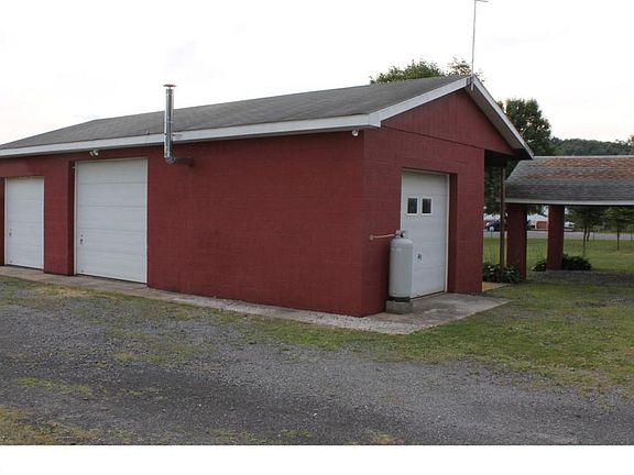 This charming brick single offers AMAZING garage space. A 24x40 block garage with 3 garage doors and workshop space plus 2 carports (pole structure approx. 22x34) that could easily be converted for more closed storage if desired. The home is situated on a just under a half acre and on a corner lot. As you enter the mud room, you will find plenty of storage and a great place to kick off your shoes and hang your coat. A laundry room and half bath can be out off of the eat in kitchen. The spacious dining room with built in cabinet and living room are located off of the kitchen and have new carpet. Upstairs find 3 bedrooms and a recently remodeled bath. Replacement windows throughout most of the home. Updated electric throughout. Economical coal heat. In town location with a country feel!