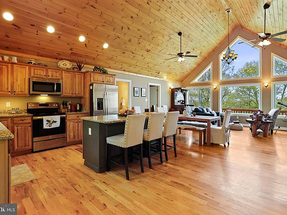 This amazing chalet with top-of-the-line features and beautiful views is just waiting for you to call it home. With 3 bedrooms, 2.5 baths, an open floor plan, high knotty pine ceilings and large windows, make a spacious and bright living/entertaining area. This gourmet kitchen with a large island, granite counters and stainless-steel appliances will make anyone happy to spend their time there. Primary bedroom is spacious with a vaulted ceiling and its own deck access. A large en suite bathroom on the primary with tile floors, shower, and jacuzzi tub. The spare bedrooms offer comfort and convenience, sharing a Jack and Jill full bathroom adorned with tile floors. One of these bedrooms also grants access to a spacious rear deck. Outside, has a covered front porch, and a sprawling back deck waiting for you to unwind and savor the seasonal mountainous views that stretch as far as the eye can see (the trees that interfere with the summer views are on the property. The future owner could have them removed to enjoy year-round views). With a partially finished basement offering endless possibilities, including a rough-in for a future bathroom and a walkout level entrance, this chalet is poised to fulfill all your dreams of mountain living. Don't miss your chance to make this extraordinary retreat your own oasis of serenity and style. This home has had 1 owner and been well maintained, just having alternative septic maintenance and pumped. This property is in a sanitary district, go to Warren County website for more information. Shenandoah Farms is a great community with a ton of resources, and activity locations. Shenandoah Farms Riverview Boat Landing, with Access to the Shenandoah River, Farms River Road Rec Lot, Lake of the Clouds, Spring Lake, Shenandoah River Recreational Lot, Treasure Island, & Community Center.