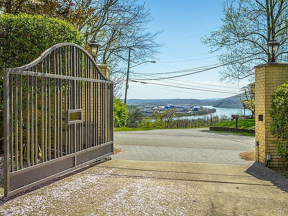 With incomparable views of Chattanooga, the Tennessee River and the Tennessee River Gorge, Whitehall offers an opportunity to live in downtown Chattanooga, but with the privacy of 3.6 gated acres. With 5 bedrooms and 5.5 bathrooms, an ample third floor, and plenty of entertaining spaces, this meticulously kept 1920s era home awaits the next owner to enjoy the lifestyle it affords. Generous windows allow light to fill the spacious rooms, showcasing the original plaster moldings, 4 gas burning fireplaces, and the original tiger oak floors. Mature landscaping, and some of the trees left from the original farm over 100 years ago, grace the property and surround the three first floor patios. The timeless chef's kitchen with marble floors and counters, breakfast room and butlers pantry, are found through the swinging door off the dining room featuring reproduction Swedish wallpaper from the 1800's, adding to the charm and history of the home. The kitchen features Viking and Sub-Zero appliances, Barber Wilson faucets and a wine refrigerator. With one guest room and full bath on the first floor, the home's remaining four bedrooms, storage and linen closet are off the second floor's ample hallway. There, you will also find the home's office, with its own balcony overlooking the city and river. The third floor flex space makes for an excellent playroom, second office, or even bedroom, as it features its own full bath and bar. Ample closets, storage, excellent full basement, two laundry areas, wine cellar and safe are a welcome surprise. Agents protected.