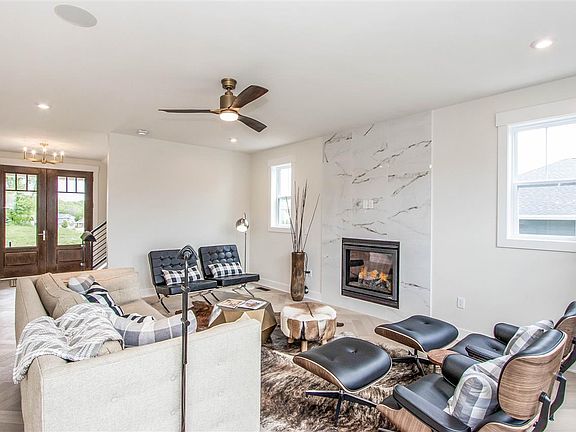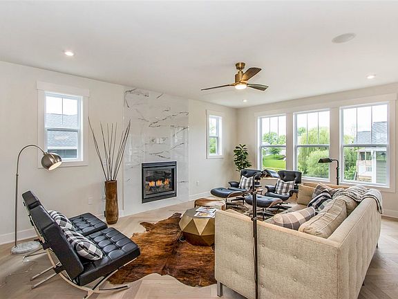 Large Colonial-style home w/ 6 bdrms, 3.5 bths. Features foyer entry, open floor plan, gas F/P, hardwood flooring, designer light fixtures, slow-close cabinetry, quartz counters, stainless appliances, pantry, large eat-in island, mudroom, tiled baths, tiled master shower, soaking tub, dbl vanity, master walk-in closet, loft, 4-bdrms on same floor, wet bar, front porch, deck, walkout patio, fenced yard. Completion May 2019. Early customization available.