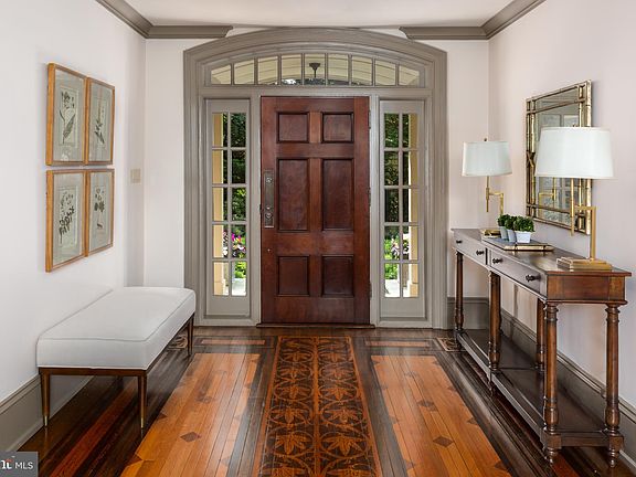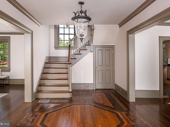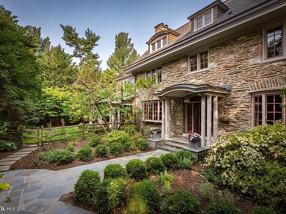 Located at the end of a private lane, this magnificent Cotswald-style, stone manor home was designed and built in the early 1900’s and meticulously reconstructed inside and out in the early 2000’s by the current owners. Combining all the grace and stately presence of the early 20th century with the style and function of today, this home is perfection. This 3-story Center Hall home features 5 Bedrooms, 4.5 tile Baths, generous room sizes and millwork, 4 gas fireplaces, beautiful hardwood floor, a chef-worthy Kitchen, a large professionally landscaped private lot, 3 zone HVAC, circular driveway, wine cellar, whole house generator, and a separate 3-car Garage. All this in a “walk-to-Wayne” location and award winning Radnor Township Schools. The traditional floor plan features hardwood floor with a stenciled border in the oversized Center Hall, fireside Living Room and fireside Dining Room. The Family Room includes multiple windows and french doors leading to a gracious, mahogany-floored Veranda. The Kitchen includes a commercial-style gas range, all stainless appliances, pickled wood cabinetry, granite counters, a wine fridge, ice machine, and a center island. A separate Breakfast Room, Breakfast Deck, Mud Room, back stairs and a rear entrance with barrel ceiling complete the first floor. Access the 2nd floor via a turned staircase. The Main Suite includes a spacious Sitting Room with ornate stone, gas fireplace and leads to the Main Bedroom with three walls of windows overlooking the lovely landscaped gardens. The Main Bath features a marble tile shower, jetted tub and two separate vanities. The 2nd Bedroom has a brick, gas fireplace and extensive cherry built-ins. A marble tile Hall Bath with stall shower, a separate Laundry Room and a room-size Cedar Closet complete the 2nd floor. The 3rd floor has wall-to-wall carpeting, 3 Bedrooms, a marble tile Hall Bath with a stall shower and a pedestal sink, and a 2nd large Cedar Closet. The exterior features include unique Wissahickon schist stone construction, a circular driveway edged in Belgian block, flagstone walkway, stone pillars, field stone Terrace, a wrap-around Philippine Mahogany Veranda, a rear yard edged in evergreens, professionally landscaped gardens with mature plantings, extensive exterior lighting and a sprinkler system, and a 3-car detached Garage with its own HVAC and walk-up second floor storage attic. Walk to Wayne and have dinner and enjoy all the amenities and shopping options that the Main Line has to offer.