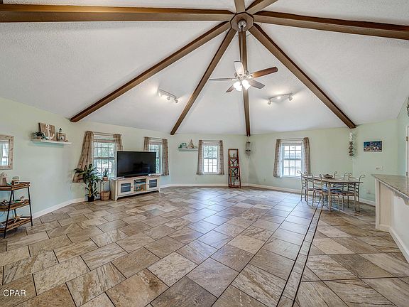 Step inside to discover an open floor plan highlighted by stainless steel appliances in the modern kitchen, seamlessly flowing into the living and dining areas. The large enclosed sunroom with a bar is an entertainer's paradise, perfect for year-round gatherings.