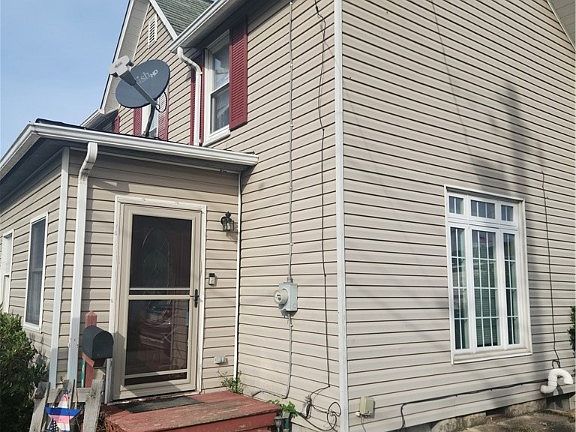 Spacious Colonial home on fenced-in corner lot. Main floor consists of living room, dining room, sunroom, half bath and eat-in-kitchen with breakfast nook. Upper level consists of 3 bedrooms and full bath. Basement has plenty of storage and additional full bath. Covered rear porch. Shed. Two-car detached garage has one side closed in, but it can easily be changed back. Conveniently located to the high school football field and park.