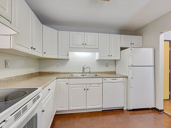 Wow, what a great location (pretty close to Minnehaha Regional Park) and has a reasonable HOA. Just completely painted and 3 new light fixtures. Plus boasting newer (very expensive) sliding glass door and bedroom window along with fairly new wood flooring throughout. With the deck/balcony facing West you get great light the second half of the day (nice dark mornings). The garage is literally the very best one if you could pick one (end of the row being the easiest to maneuver in and out of without waiting for anyone else). Rentals are permitted.