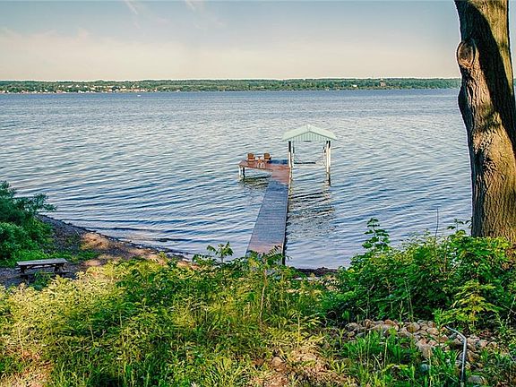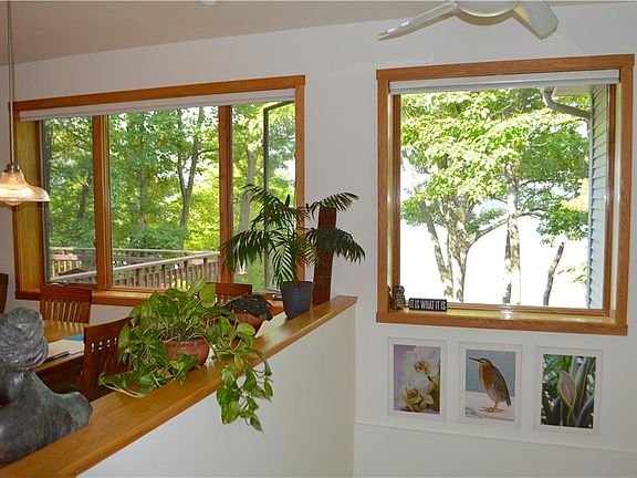 Paradise found! This gorgeous architect-designed lake home is located on a peaceful, secluded wooded lot. The open living space with cathedral ceilings has impressive attention to detail. A wall of windows provides beautiful year-round lake views. Almost 200 feet of substantial lakeshore with easy access to beach - no stairs! Permanent dock with electric hoist, wrap around deck w/ dining area, outdoor shower, manicured gardens, radiant floor heat, lower level walkout with patio, gas FP, back-up generator, municipal water, security system, Spectrum cable, and sunsets. No compromises here!