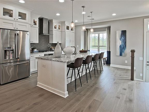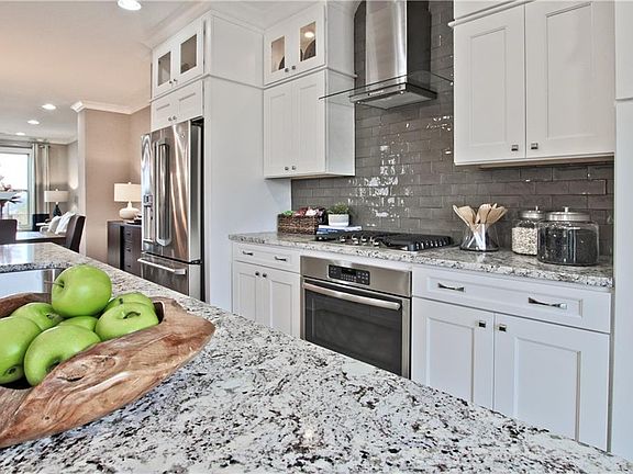 • Kitchen Features: Pantry, View to Family Room, Stone Counters, Kitchen Island, Cabinets Other, Cabinets White