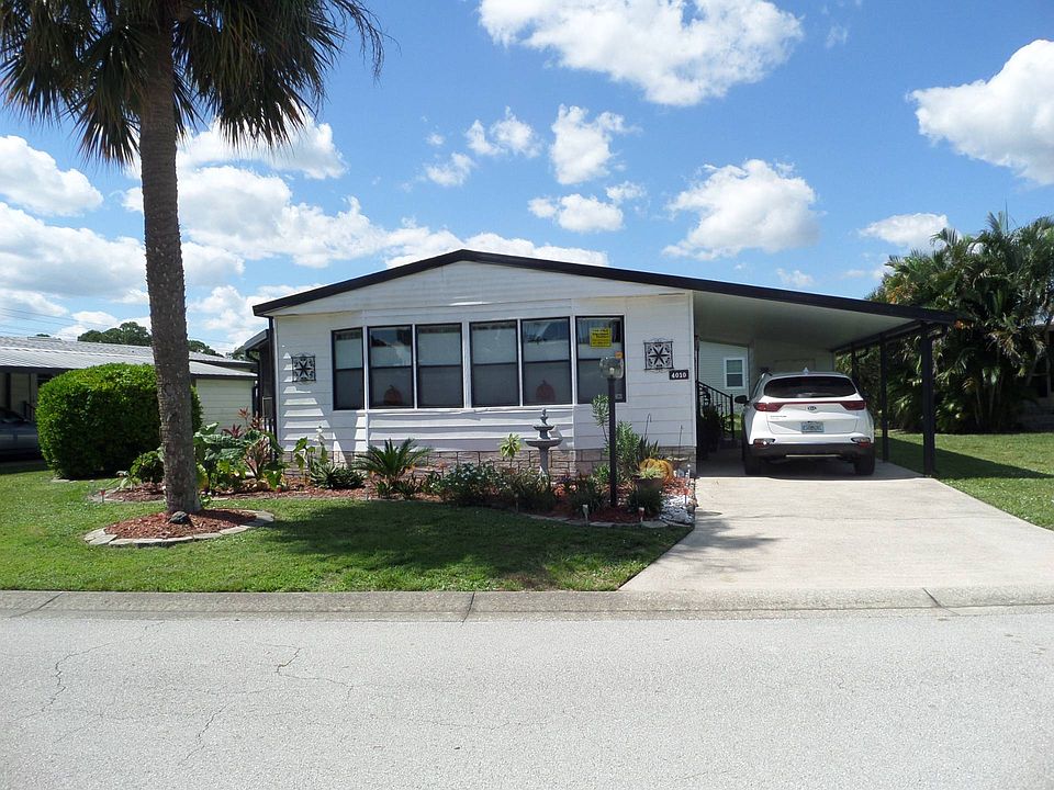 ROOF - A/C - WATER HEATER ALL 5 YEARS NEW!!! New wood flooring. Enter from under the carport into the hallway, then into the dining room with lighted china cabinet with lots of storage on the bottom. Continue into the open kitchen with flat top stove/oven, microwave, dishwasher and side by side fridge with water and ice in the door. Kitchen has sliders into the good size screened sun room with "pebble-tec" flooring and a door to out front and a small patio. Large living room has a wall of shelving and cabinets and lots of windows. Large master with lots of natural light and a walk in closet. Spacious master bath with walk in shower, new commode, all new fixtures, a long vanity and a linen closet. Roomy guest room with entrance to guest bath also with new commode. ENTIRE HOUSE HAS BEEN RE-PLUMBED!!!! The Lakes of Melbourne is a great place to live. It is a gated community for safety. Heated pool, large clubhouse with billiards, fitness room, library, craft room card / game room and a ballroom with a stage for shows and parties. Tennis and more. Close to shopping, restaurants, golf, medical facilities and a short drive to the beach. This is a 55+ community with monthly lot rent of 665.
