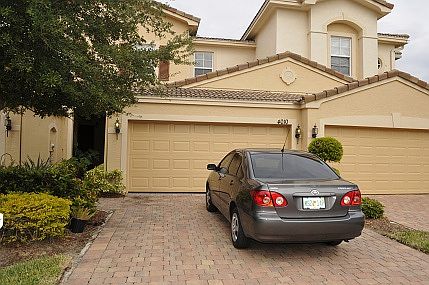 Casa Del Sol Home offering 3 bedroom 2.5 baths and a 2 car garage and room for shelving. Beautiful and private back yard Views of lush tree tops. TONS OF UPGRADES including STAINLESS STEEL appliances, GRANITE countertops, Tile throughout the living areas and much more! A wonderful place for your family to enjoy! Downstairs living and dining area features tile. Spacious bedrooms with tray ceilings and large master bedroom with large walk-in closet are located upstairs. Master bathroom features his and hers vanity with a separate shower and bath design. San Simeon amenities include a resort-style pool, spa with hot tub, fitness room and play area for kids. San Simeon is close to everything including I75, shopping (walmart, publix, bj's, lowes, restaurants, gas stations are less than half a mile), golf courses, parks, walking, biking paths, and about 20 minutes to the international airport. Approx 25 minutes to the BEACH! :)