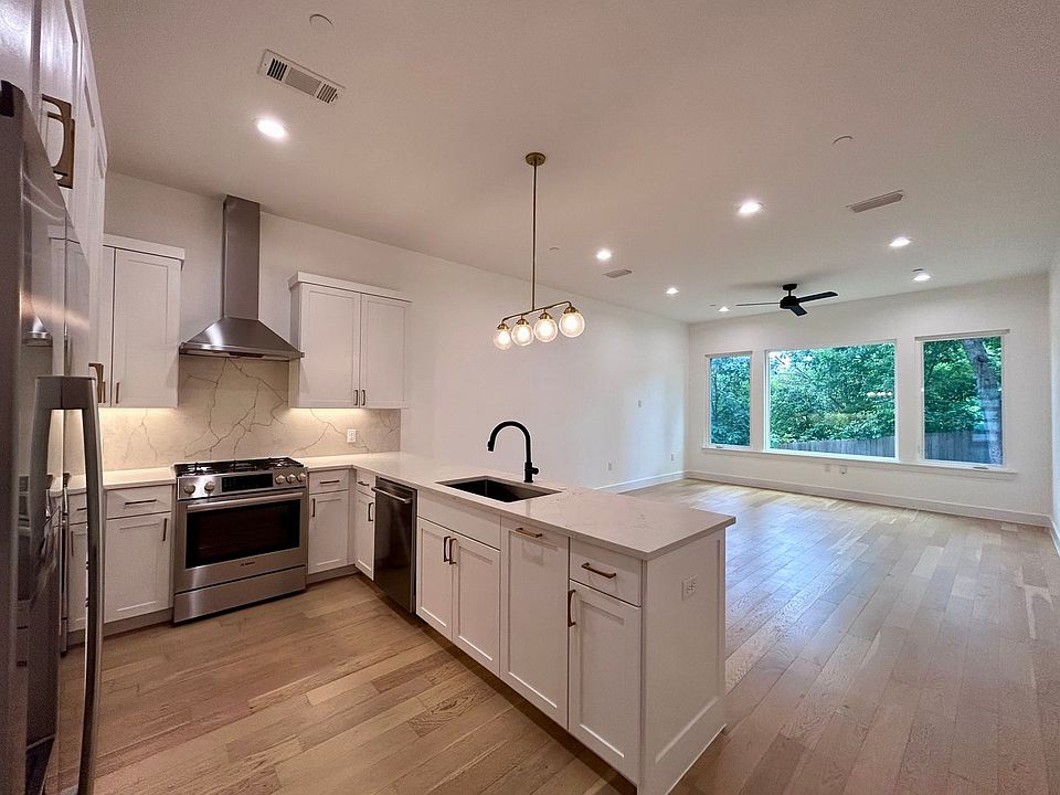 Built in 2021 Two story luxury townhome! The kitchen opens to a living area with large windows to give natural light, all stainless steel appliances, refrigerator included, and a spacious laundry room with washer and dryer hookups. Each bedroom with it's own connected bathroom, downstairs bedroom is perfect for a guest room or office space with walk in closet and connected to guest bath. Upstairs bedrooms with ensuite bathrooms and walk in closets. Includes assigned parking, a dog run with a doggy station and access to an EV charger! All properties within Neighborhood Realty and Property Management's portfolio are required to participate in a mandatory Resident Benefit Package. This suite of amenities is designed to improve the quality of the tenant's experience while living in the property and maintain lease compliance. The cost of this program is $43 per month
