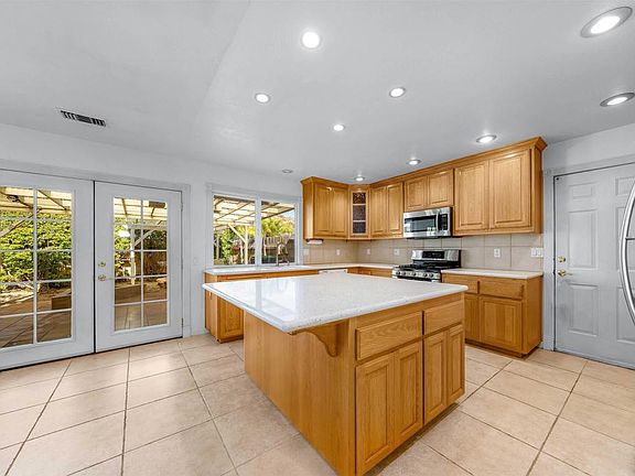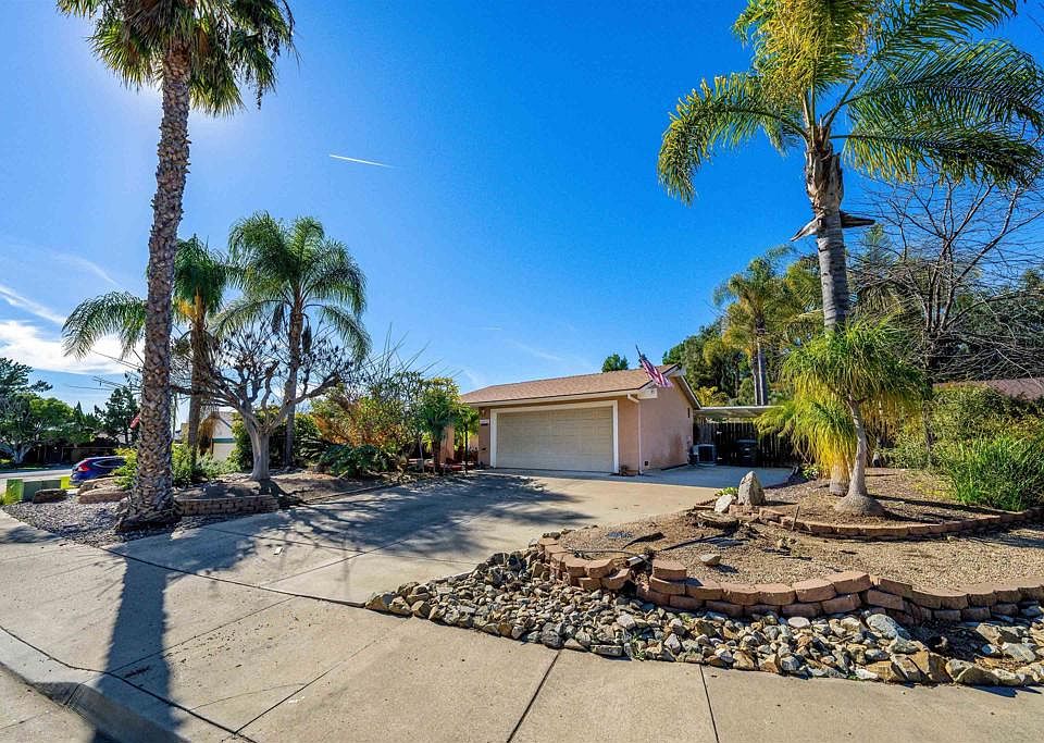 Nestled at the base of the picturesque Mount Helix, this remarkable property awaits your arrival on a peaceful cul-de-sac, offering an ideal blend of serene surroundings. Step inside and be greeted by an expansive open floor-plan that seamlessly connects the various living spaces. The heart of the home is the generously sized kitchen, equipped with stainless steel appliances, an inviting island, and an abundance of counter space, making it a chef's delight. The living room opens graciously with a warm fireplace, creating a cozy ambiance for gatherings or quiet evenings. Adjacent to this, a spacious family room featuring a bar provides an excellent space for entertaining. Illuminate your living spaces with the modern touch of recessed lighting, enhancing the overall atmosphere of the home. The large primary suite offers a private sanctuary, complemented by spacious bedrooms ensuring comfort for every member of the household. For those who enjoy hands-on projects, a dedicated workshop area adds versatility to the property, providing space for creative endeavors and hobbies. Step outside and discover shaded seating areas surrounded by meticulously landscaped gardens, palm trees, and planters. Additionally, delight in the presence of fruit trees, including orange, lemon, and avocado, adding a touch of nature to your backyard. Practicality meets style with a newer roof, ensuring durability and peace of mind. This residence is not just a home; it's a harmonious blend of a fantastic location, thoughtful design, and natural beauty at the base of Mount Helix. Seize the opportunity to make this extraordinary property your own. Call now!