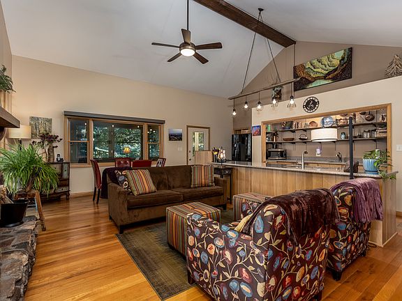 *** Multiple offers received. Best and final offers are due by Wednesday, September 3rd at 3:00 PM. The seller will review all offers and make a decision by Thursday, September 4th. *** Secluded on 2.49 wooded acres, this contemporary ranch with walk-out basement offers the perfect private retreat. Tucked away down a long driveway, the home greets you with charming cottage-inspired details and a welcoming walkway. Inside, vaulted ceilings and an open floor plan create a spacious, airy feel, highlighted by a striking stone wood-burning fireplace and expansive views of the surrounding woods. The kitchen and dining area flow seamlessly into the living space and out onto a stunning 60+ ft screened-in porch-an ideal spot to enjoy morning coffee, evening wine, or gatherings with friends. The main level features two spacious bedrooms, each with walk-in closets and en-suite bathrooms, along with convenient access to the garage and enclosed carport. The walk-out basement is a home of its own, designed for comfort, flexibility, and potential related living. Here you'll find a large family room centered around a cozy gas fireplace, a second kitchen, a bright and spacious office, laundry/utility room, abundant storage, and a third bedroom with a walk-in closet and en-suite bathroom. Both the family room and office open to a covered patio overlooking the peaceful, wooded backyard-making it a perfect extension of your living space or a private retreat for extended family. Additional highlights include a detached garage with workshop, a small horse barn, and a whole-house generator for peace of mind. A rare opportunity to own a serene wooded property that blends comfort, character, and practicality.