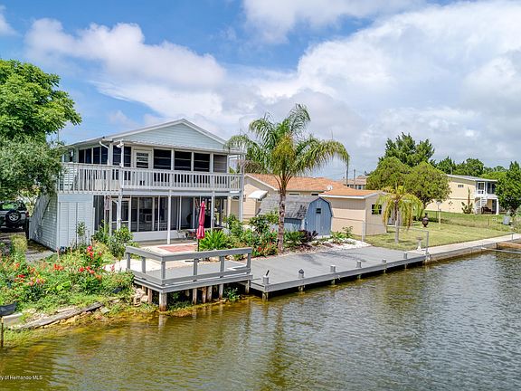Affordable Waterfront Home in North Hernando Beach. Located on the deep and wide Kingfish Canal with Direct Access to the Gulf of Mexico. This is a Stilt Home with 2 Bedrooms/1 Bath on the main level upstairs. It includes a large Living Area with new vinyl windows, new Wall AC Unit, stove/small refrigerator and new Kitchen Back splash. The lower level is not included in the Living Sq Ft.. It offers a Garage that has been converted into a Kitchenette with refrigerator & stove as well as Studio Apartment with full Bath and Separate Entrance adding another 576 sq ft to enjoy. Relax in the large Screened Enclosure on the lower level or on the Balcony upstairs. Metal Roof. Large Stationary Dock. Storage shed. Open Patio. VE Flood Zone. Is occupied. Do Not walk around w/o Realtor & appt.