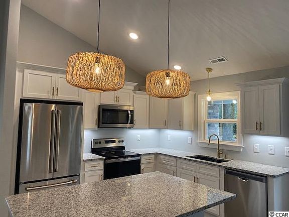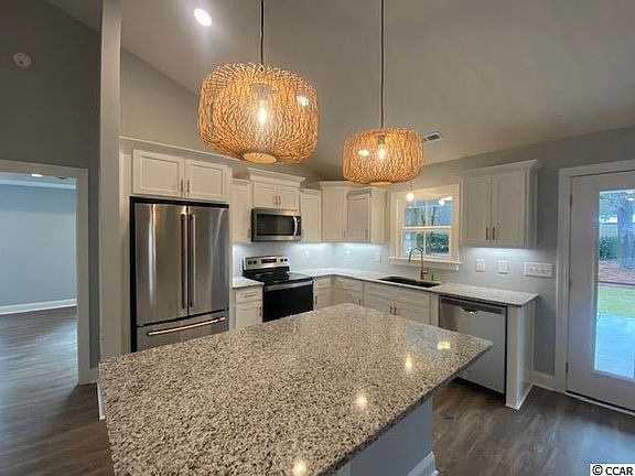All brick 3 bedroom/2 bath home located on a large home site in the desirable Aynor School District. This top-selling home plan features a spacious great room, granite island kitchen, large bedrooms, multiple storage closets, laminate wood flooring, and a sprawling rear lawn. In addition to the granite counter tops, this upgraded kitchen features all stainless appliances, all wood 5-piece cabinetry with soft close dove-tailed drawers and doors. Enjoy your meals at the spacious island, or in the formal dining room. The large master bedroom and bath features a garden soaking tub, over-sized shower, high-quality brass body delta valves and faucets, granite vanity tops, double sinks, and an enormous master walk-in closets. Exterior features include a carriage style automatic garage door with glass window for natural light, quiet belt drive garage door opener, and maintenance free vinyl shake gables and dormers, brick soldier course and quoined corners, over-sized concrete drive, entry sidewalk, screened rear porch and more! Call today to view this lovely home!