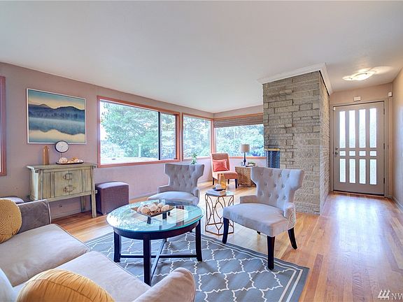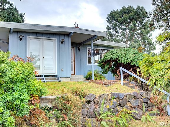 This wonderful mid-century sits high up to take advantage of the water, mountains and territorial views. Open spacious living rm w/corner frpl, hdwd flrs & lovely built-in alder cabinetry. Gourmet kitchen w/alder cabinets/matching refrig/freezer, cork flrs, & 5 burner stove. Formal din rm w/slider to lrge deck, 2 bedms on main w/lovely tiled bth/Japanese tub. Lower level has either fam rm/3rd bedroom w/antique drawers, huge window to enjoy the garden, 4th rm as media/office, bath-much more!