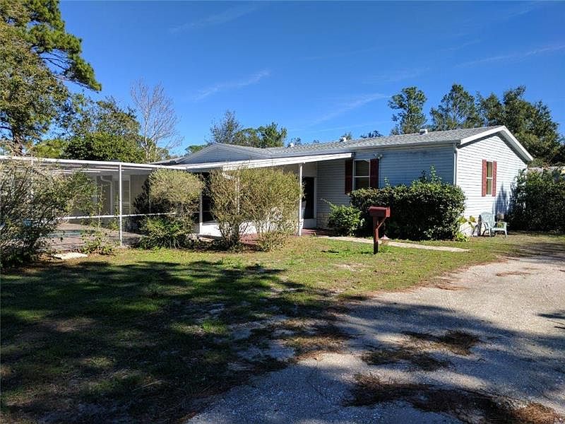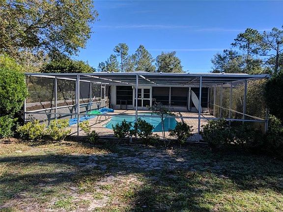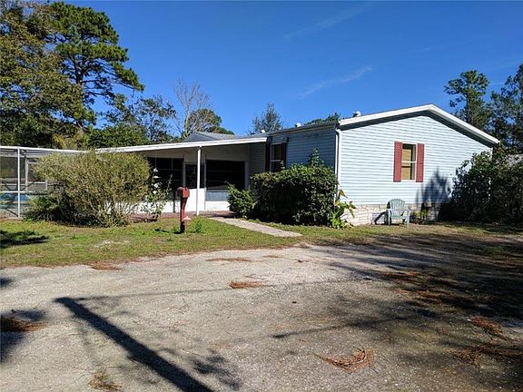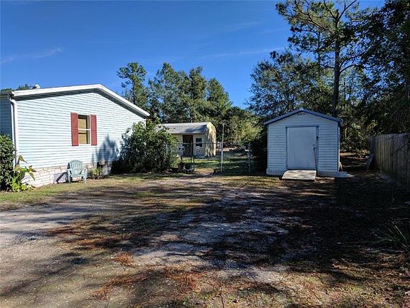 Peaceful acre+ lot with spacious open concept vaulted ceiling solid Palm Harbor manufactured home with cement skirting for insurance credit. Resurfaced & rescreened pool & newer pavers on patio plus xtra large Florida room. Many newer updates also include: AC & duct work, range, dishwasher, refrigerator, washer/dryer, toilets, tile & sink master bath, 12x16 pole barn w/ loft, water & electric., 2 10x10 sheds one w/ electric & one w/ cinder block base. BBQ under the cool shade of the big oak, gather round the fire pit in the far back, relax on the back deck, hang out in the Florida room.