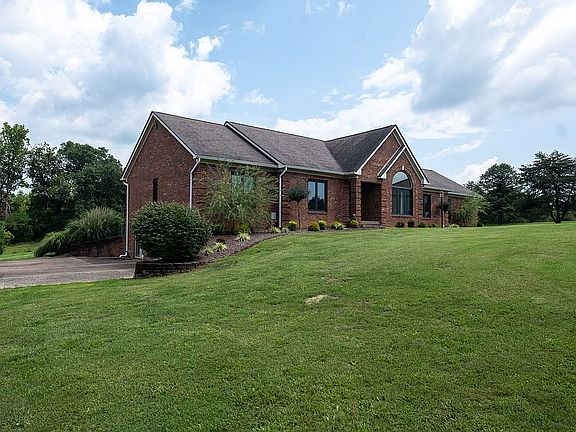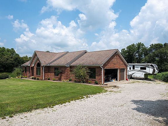 This gorgeous property sits back off Highway 3 just north of Charlestown, close enough to town but far enough to relax and enjoy the wildlife in the backyard. Over 6 acres of tranquility and space surrounded by trees on 3 sides for privacy and relaxation. Large front/back yards with new landscaping (2023). This custom brick home was built to last with 2x6 construction, 9’ceiling, solid wood interior doors, insulated interior walls for sound, Bosch geothermal in-ground heat pump (new 2018), thermal double paned low E casement windows throughout (new 2022), ceiling fans, central vac, intercom, walkout basement/patio and 400 Amp electrical service with 50 Amp RV hookup at the house and barn. Yes, barn, 40’ x 56’ pole barn with concrete floor, lean-to, front and back concrete pads, includes 5 hp air compressor. This spacious home has over 5500 sq ft of living space including the basement with large rec area, gas stove, laundry room. Total of 4 bedrooms plus a bonus room, 4 full baths, 20'x28' great room with floor to ceiling stone fireplace (gas insert) beautiful custom oak mantel. Lovely dining room and music room with large arched window includes a baby grand piano has new luxury vinyl plank flooring (2024). Kitchen has lots of solid wood custom cabinets, newer appliances and breakfast bar. The large master bedroom has hardwood floors with attached bath that includes a whirlpool tub, double sinks and walk-in closet. Walk out on the deck to a fenced in backyard perfect for kids and/or pets. Other items that stay with the property: LG front load wash & dryer, upright freezer, refrigerator in attached garage and extra wide humidity controlled 64-gun gun safe. Please call 502-303-1078 for appointment.
