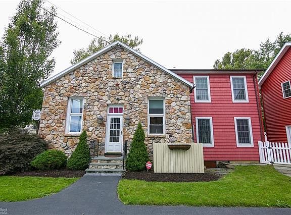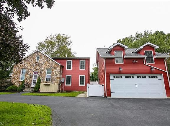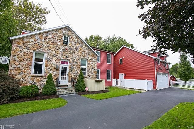 STUNNING and REMODELED circa 1871 Historic School House located in popular Hanover Township. This home offers modern amenities w remarkable charm all meticulously maintained. Walk in to the open-concept Kitchen/Living Rm w large FIREPLACE main focal point. Amish made cherry cabinets, corian countertops, & newer stainless appliances. Laundry Rm and 1/2 bath finish the kitchen. The Living Room boasts original wood floors, deep window sills & original wood beamed ceiling. The very large Dining Rm/Family Rm w exposed stone, is perfect for gatherings all leading out to the slate patio, private and fenced. Upstairs in the main home you will find The Master Bedroom addition, remodeled full bath w heated floors and 2 additional bedrooms. The two car oversized garage offers rubber floors, heat, ac, fridge & sink. Above a large finished carriage house, full bath and walk in closet perfect as an in-law suite, or guest house. This is a very special property, well-taken care w pride of ownership.