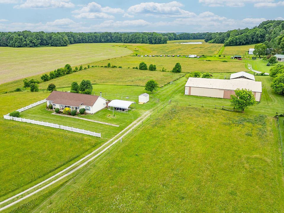 BARNS, BARNS BARNS!!! Perfect location, yet in the country! Potential commercial farm for horse boarding! 3 BEDROOM, 2 BATH HOME ON ALMOST 10 ACRES near Painted Hills and Cedar Creek Winery in INDIAN CREEK SCHOOLS. HUGE BARN/RIDING ARENA 54'x99' with 26'x13' slider main doors and 17'x12' side slider doors; 36'x50' barn with 4 HORSE STALLS, concrete center isle, tack room/feed room/office area; and an additional Barn Master 36'x36' barn with 5 more HORSE STALLS. New roof on middle barn; Nelson waterers; 5-6 pasture areas with some partial fence. 2023 10x12 mini barn; New 2-car carport. Great space for a hobby farm, horse enthusiasts, vegetable farm, etc. Most of the ACREAGE is BALED INTO HAY FOR EXTRA INCOME. LOCATED JUST OFF OF SR 252 and 5 minutes to I-69. Thirty minutes to Indy or Bloomington!