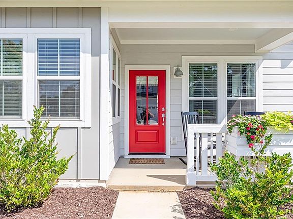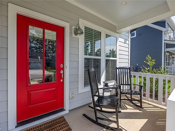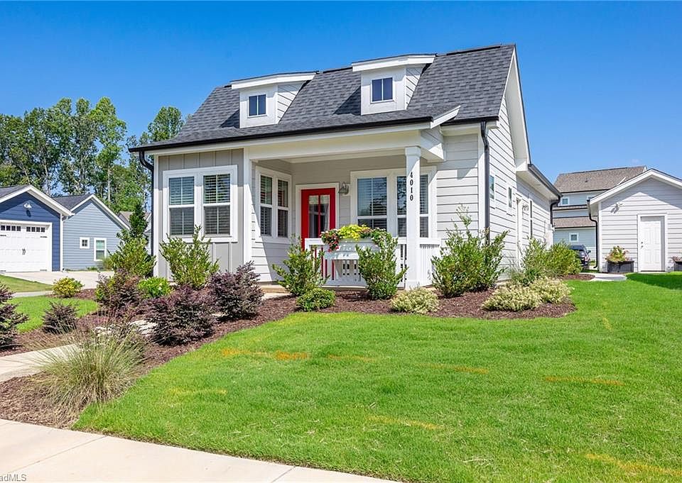 Welcome to your Cottage home in the beautiful Montrose Village & Prestigious Grandover neighborhood. This home has a lovely Rocking Chair front porch and then enters into a wonderful open living space w/ Vaulted Ceiling in the Living room and built in bookcases. Granite countertops w/seating at the kitchen island. SS appl. including a built in MW & gas stove. Tile backsplash & soft close drawers. Cozy built in benches in the breakfast area with coffered ceiling. Wide plank wood flooring. Primary has lovely accent wall. Ensuite w/ large tile shower. 2nd BR w/nice closet and carpet flooring. Hall bathroom with tub/shower and tile floor. Separate Laundry leading to the 1 car detached garage & outside patio. Montrose Village HOA includes lawn maintenance, Grandover HOA includes neighborhood pool, Swim & Racket Club w/ Fitness Center, discounts to Grandover Hotel include rooms, spa, dining & golf! Visit the website for more photos: www.grandoverresort.com