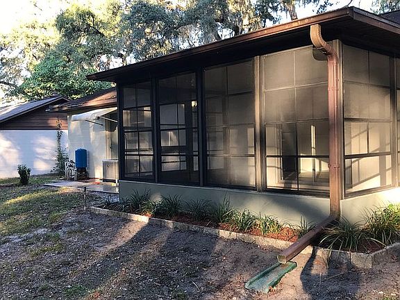 Charming. Like new. Concrete block. 3 bed 2 bath split plan. Peaceful neighborhood. Walk to Publix and dining. New Roof. New A/C. New Appliances. New water heater. New paint inside and out. New kitchen sink. New faucets throughout. Laundry with W/D hookup. 10x16 Florida Room. 8x14 outdoor Utility Shed. New 22 mil. LVP flooring throughout . Faux electric Fireplace . New septic drain-field. Separate well for irrigation. Private water system with super low rates. Great small family or retirement home. Enjoy the serene never to be built on wooded setting in back. This home needs nothing but you. Must see to appreciate. Private seller lives nearby and can show with little notice.
