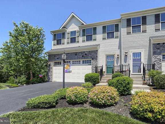 Stunning home in the highly sought-after Stray Winds Farm community, renowned for its ample green spaces and serene environment. This premium end unit Rosecliff floor plan, built by Ryan Homes in 2017, boasts over 2,300 square feet of meticulously maintained living space and over 70K in recent home improvements, featuring 4 spacious bedrooms, 3.5 baths, and a 2-car garage. Elegant 9ft ceilings with crown molding and gorgeous engineered hardwood floors throughout the first floor create a warm and inviting atmosphere. Spacious great room filled with natural light opens to a gourmet kitchen with cabinet crown molding, granite countertops, a center island with seating, pantry, and stainless-steel appliances including a gas stove. The dining area, adjacent to the kitchen, leads to a 16x12 composite deck perfect for outdoor dining and entertaining while enjoying the scenic backyard vista. The luxurious 2nd floor owner's suite with two walk-in closets and a full tiled bathroom with a spacious Roman shower, double vanity, and granite countertops. Two additional bedrooms with ceiling fans, a full bathroom, a laundry room with shelving, a cozy loft space, and newly installed upgraded carpet complete the 2nd floor. Step down to a fully finished lower-level 4th bedroom, full bath and a walk-out family room with a stylish build-in remotely controlled electric fireplace and plenty recessed lighting. A 23x13 concrete patio off the family room's sliding glass door offers additional outdoor living space. Modern amenities include a tankless gas water heater, natural gas furnace, whole-house humidifier, and enhanced landscaping on all three sides of the home. Extra parking available across the street. Community amenities include miles of lighted walking trails, a park with a playground and picnic pavilion, and convenient access to major highways, downtown Harrisburg, and the airport. The HOA fee covers lawn maintenance and snow removal, ensuring a carefree lifestyle. This beautiful home offers a perfect blend of luxury, comfort, and convenience in a vibrant community setting. Don’t miss your chance to make this your new home!