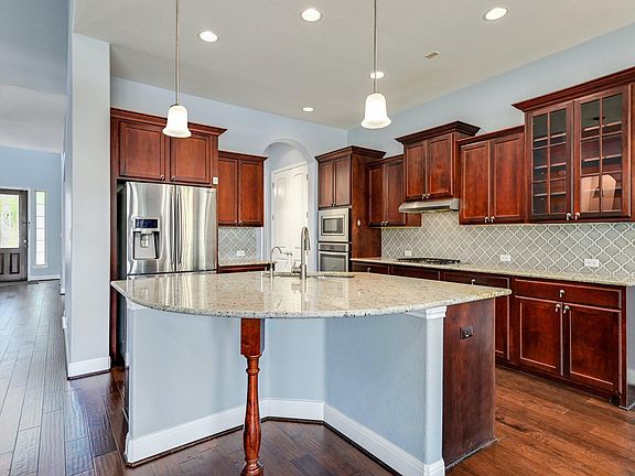 Outdoor kitchen with extended covered patio! Hardwood flooring. 5 bedrooms with 3 full baths in highly sought after Ranch at Brushy Creek. Master and guest bedroom with full bath at main level. High ceilings throughout. Open kitchen with island. Epoxy flooring in garage. Exemplary RRISD schools. Full sprinkler systems front and back.